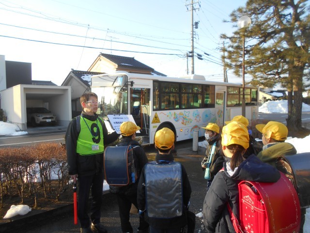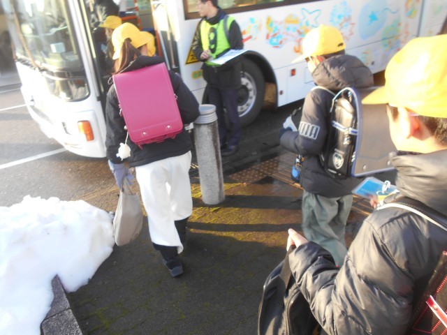 学年ごとに並んで待ち、運転手さんに「おはようございます!」と元気にあいさつをしました。