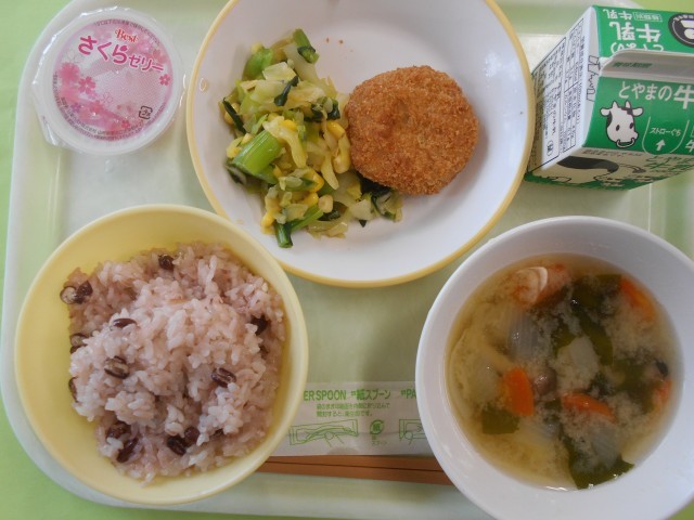 ・赤飯 ・牛乳 ・とんかつ ・コーン和え