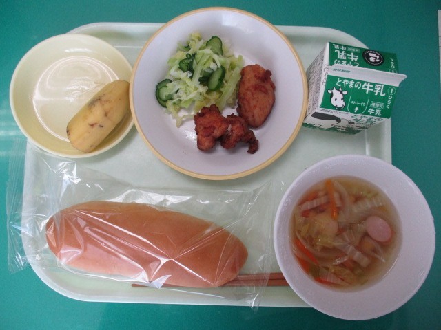 ・コッペパン ・牛乳🥛 ・鶏肉の塩こうじ揚げ