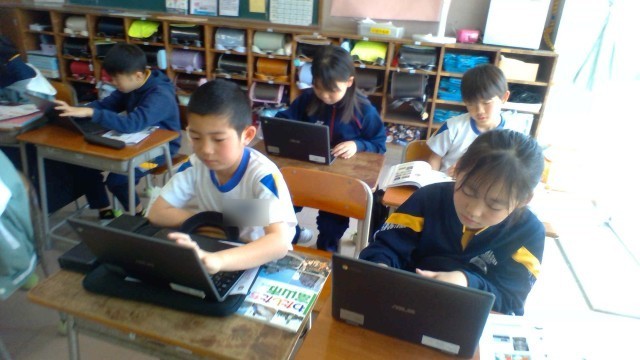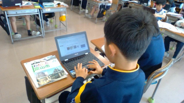 昔の道具について調べ、スライドにまとめています。