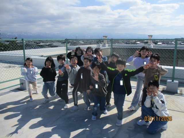 2年生 屋上で学級写真