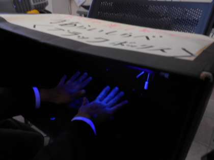 いざ確かめようとすると、どきどきして、なかなかブラックボックスに手を入れられません。手を入れてみると青くなったところがあり、どこを丁寧に洗えばよいかよく分かりました。