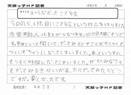 6年生 天瀬っ子HP記者「今日のコテ絵体験!」1