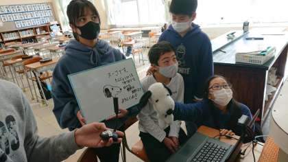 交流中、何を思ったのか。このグループは、6年生教室にいるマスコットキャラクター「ヌーコ」の紹介をはじめました。日頃はあまり話題に上らないヌーコですが、6年生のみんなにとっては「欠かせない存在」なのかな?担任として気持ちがあたたかくなった一コマでした。