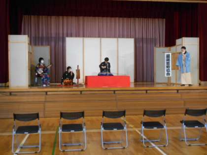 今日は、文化芸術による子供育成総合事業 巡回公演事業「演芸公演 落語」を行います。子供たちも出演します。