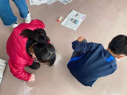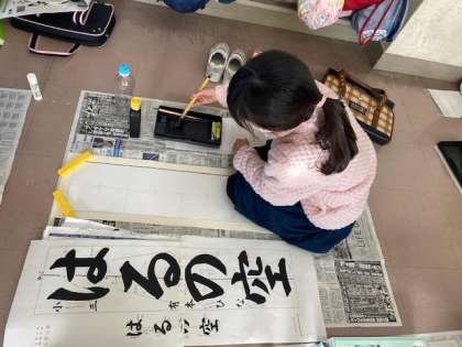 「大きな紙で書くのは、難しいな。」と苦戦しながら一生懸命練習をしていました。
