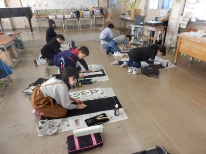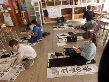今年度の書き初め練習がスタートです。今年の4年生は「立山の春」です。手本を見ながら、「バランスが難しいな・・・。」「春が書きにくそう・・。」と子供たち。練習がんばりましょう。