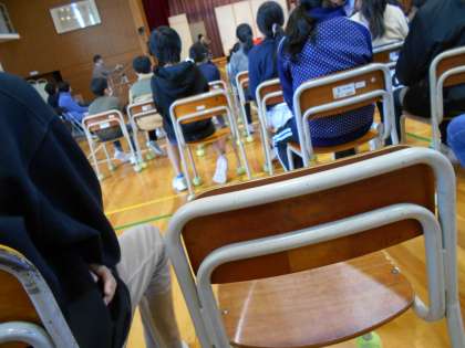 日が経ってしまいましたが、落語の公演で、みんな周りの人と話をせず、距離をとって鑑賞しました。落語や曲芸を楽しんだ後は、手洗いとうがいもしっかり行い、アルコール消毒もして給食を食べました。楽しい時間でした。