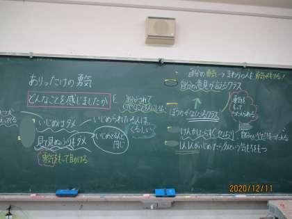 DVDを見て子供たちは、「ぼくたちのクラスも友達に本音をいえるようになったらいいな。」「悲しんでいる友達がいるときに見て見ぬふりをするのはよくないね。」などとそれぞれ番組をみながら考えを深めた時間でした。