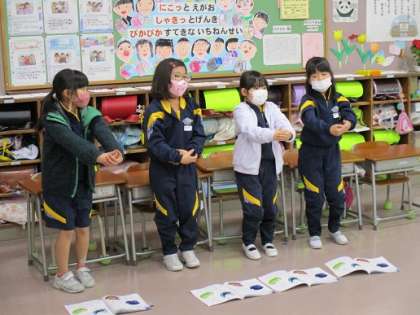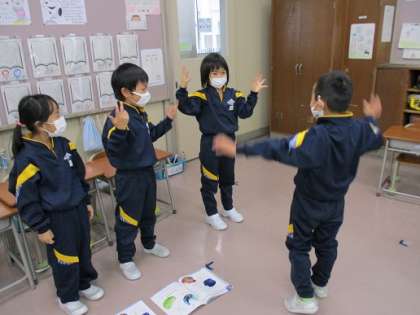おんがくのじかんに 「はる なつ あき ふゆ」をうたいました。わたしは、あきのグループになりました。かしに あわせて ふりを つけて うたいました。りすの ポーズが かわいくできて うれしかったです。さいごは みんなで うたって たのしかったです。