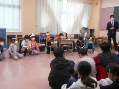 今日は音読劇最終日。3回目ですが、毎回違う役を演じるので、緊張していました。でも、5・6年生が温かいまなざしで2年生を見守ってくたので、安心して表現することができました。