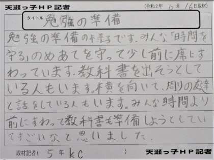 5年生 天瀬っ子HP記者「準備をがんばっています」