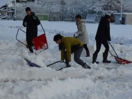 児童が安全に登校できるように、教職員で除雪しました。