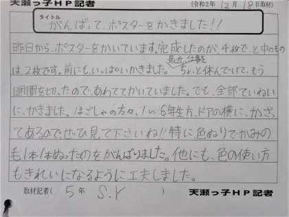 5年生 天瀬っ子HP記者「ポスター係」