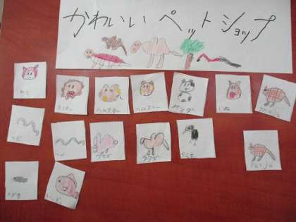 「○○さんの店で、メロンを買ったよ!」「この食パン、すごく高かった!」と楽しそうでした。リアルに絵を書いていたり、珍しいものを売ったりしていて、子供たちも夢中の時間になりました。