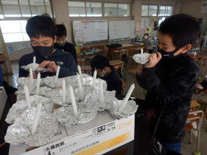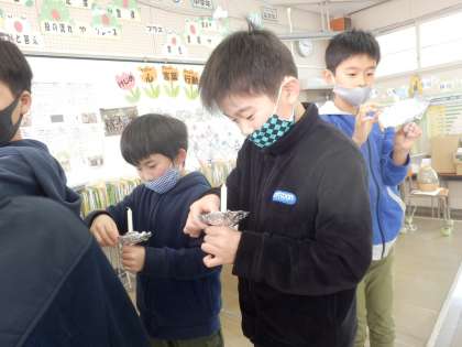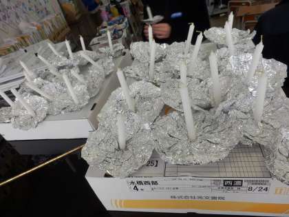 昨夜は、とっても楽しいクリスマスナイトでした。4年生はキャンドルの点火の儀式担当だったので、全体の司会を頑張りました。また、キャンドルサービスで使うキャンドルも、アルミホイルを使って燭台をつくりました。持ち手と受け皿を作るのですが、そのバランスがとても難しいです。コツをつかむときれいに仕上がります。