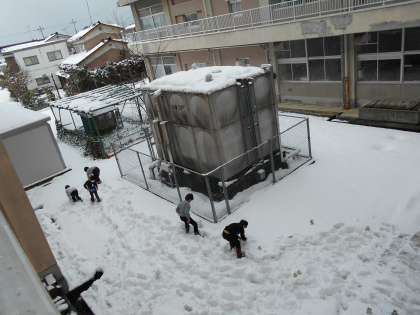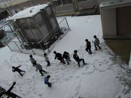 明日の朝は冷え込むという予報が出ていたので、2年生はカラフルブロック作りに挑戦しました。「どの場所が凍りやすいかな」と考えながら色水を入れた牛乳パックを中庭に置いていました。