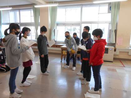 ふと、向かい側を見ると6年生の教室では劇の練習をしていました。