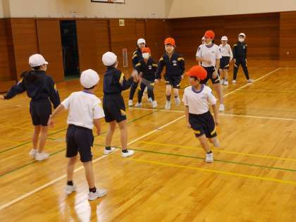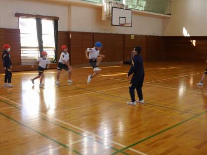 子供たちは元気です。寒さに負けず運動に励んでいます。チーム対抗で、連続8の字跳びにチャレンジしました。最初、回し手と跳び手の息が合わず、なかなか続けて跳べませんでした。チームで声をかけ合ったり、一人一人が勇気を出して縄の中央まで走り込んだりしながら、チーム全体で跳ぶ回数を増やしていきました。