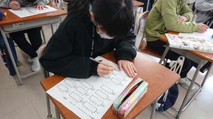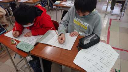 漢字・計算にチャレンジテストに向けての勉強もがんばっています。分からないところを教えてあげたり、互いの苦手を指摘したりしながら、高め合う子供たちです。