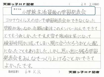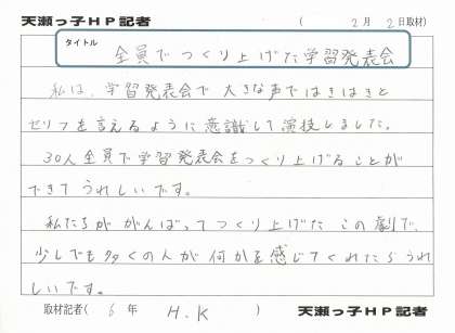 6年生 天瀬っ子HP記者「学習発表会ふりかえり」1