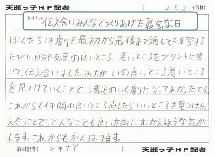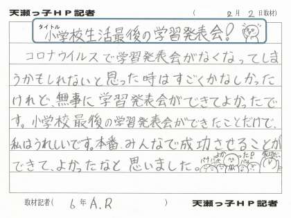 6年生 天瀬っ子HP記者「学習発表会ふりかえり」2