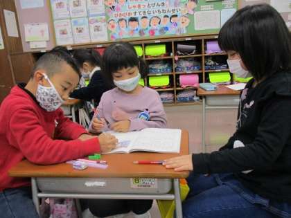 じんとりあそびは、大盛り上がりで、休み時間に続けている子もいました。じゃんけんも、色塗りも、数を数えるのも、楽しく活動していました。