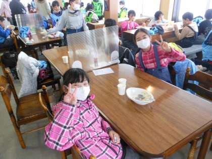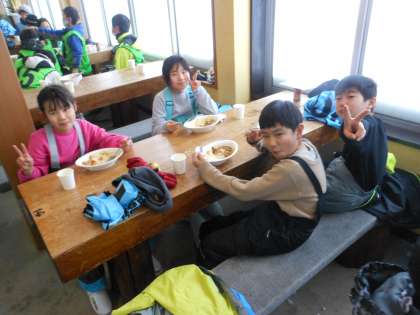 お昼はカレーです。ほかほかのカレーがとても温かくて美味しいですね。