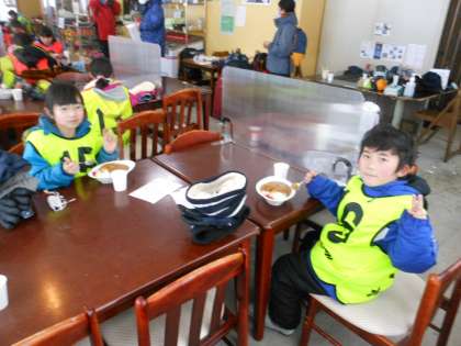 雪の中のスキー学習でしたがとても頑張った子供たちです。「疲れた〜」「滑れるようになった!!」「足がやばい・・」「もう一回滑ってきたい!!」など感想は様々でしたが、頑張った・充実したスキー学習だった事が伝わってきました。4・5・6年生みんなで参加できた素敵な1日でした。