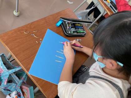 最初は、「え〜。怖い...」とおどおどしながら彫刻刀を持っていた子供たち。
