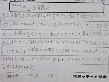 天瀬っ子HP記者 5年生「人狼ゲーム」