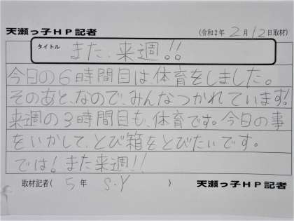 今日は、S・YさんとO・Yさんの投稿です。帰りの会の様子をあの角度から撮るSさんとOさんさすがのカメラワークですね(笑)