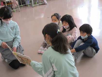 今日は、5年生さんに よみきかせをしてもらいました。5年生さんは、よむのが とくいだと おもいました。
