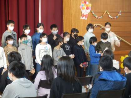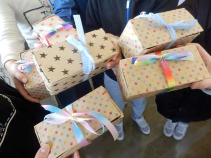 今日、6年生の卒業を祝う集会がありました。4年生は、6年生への感謝の気持ちや6年生が笑顔になってほしいという思いを込めて、プレゼントを作りました。以前、牛乳パックで作っていた物は、6年生へのプレゼントでした。6年生が喜んでくれるか、プレゼントは成功するのか、ドキドキしていた4年生でしたが、プレゼントを開けた6年生教室は、笑顔がいっぱいだったそうです。他学年の先生に、4年生からもらったプレゼントを嬉しそうに見せてくれた6年生もいたそうです。