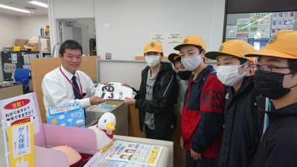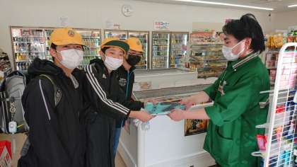 みんなで作った「のぼり旗」を、地域のお店にお届けしました。笑顔で受け取ってくださる地域の方々。店の前や駐車場に掲げてくださいます。水橋西部小学校から、よりよいあいさつの輪を広げていきたいと思いました。