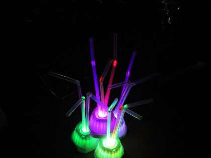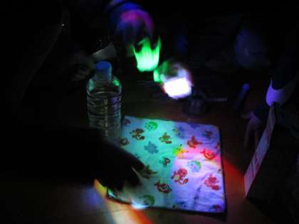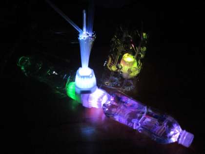 ペットボトルや卵の空き容器などを暗闇の中で大変身させました。
