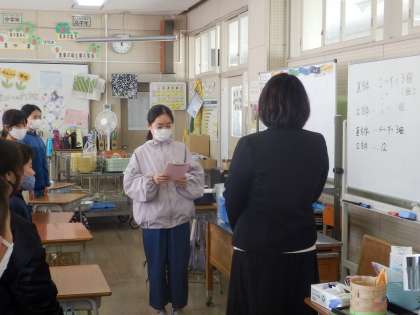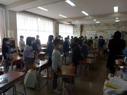 今日のお昼に、離任式がありました。4年生みんながお世話になった外国語の先生も今日が、水橋西部小学校にこられる最後の日でした。式はリモートでしたが、映像の中の先生方としっかり心を繋ぎ、一緒にお礼をしたり、話を真剣に聞いたりしていました。教室にも寄っていただき、みんなが書いたお手紙を渡すこともできました。楽しい授業をありがとうございました。