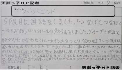 今日は、K・Cさんの記事です。6年生として最初の国語、楽しかったですね。