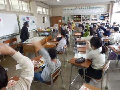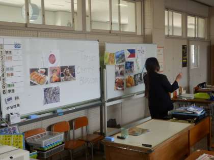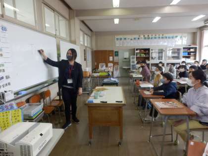 新しいALTの先生と初めての授業です。今日はALTの先生の自己紹介を聞いたり、自分の名前や好きなもの等を英語で伝えたりしました。ALTの先生はフィリピン出身だそうです。フィリピンにいる動物や街、家族のことなどを紹介してくださいました。これからの外国語がとても楽しみになる時間でした。