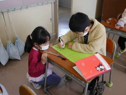 一つ一つの字を丁寧に書き、たんぽぽや桜など様々な絵を描いて綺麗に作品を仕上げました。