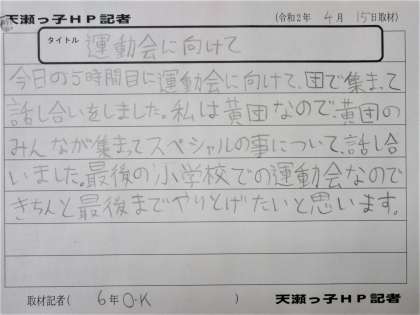 今日は、O・Kさんです。運動会に向けての取り組み、自主的な動きいいですね。