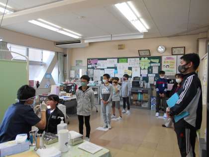 歯科検診を行いました。健康四つ葉委員会の天瀬っ子HP記者の記事でも紹介していますが、間隔をあけて静かに検診を受けていました。「何と言われるのだろう」と、ドキドキしている姿が、とてもほほえましかったです。