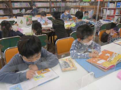 今日は、本の借り方と返し方を学びました。借りた後は、静かに本を読んでいました。早速、すきま時間に読書をして読み終わり、また新しい本を借りている子供もいました。お気に入りの本が見つかった子供は、「家でも読みたい!」と持ち帰っていました。