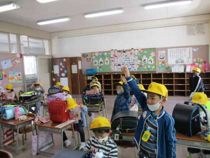 帰りの会にも慣れてきました。写真は、今日のキラキラコーナーの様子で、一日の楽しかった出来事を発表しています。