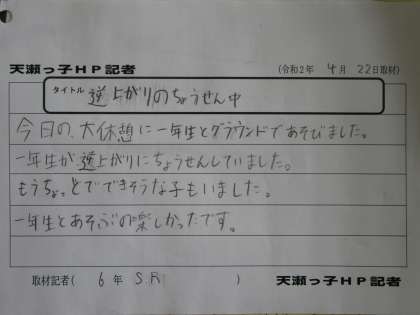 次は、S・Rさんです。1年生と一緒遊ぶ姿、お兄さんですね。
