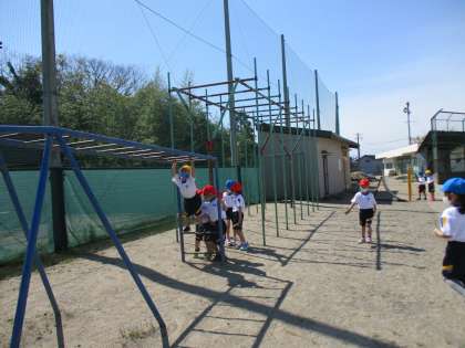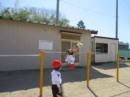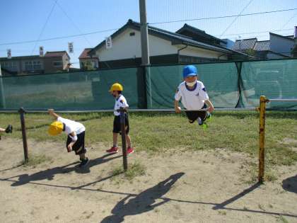 今日の体育は、走る学習と、鉄棒やうんていなど腕を使う学習をしました。体が小さいうちに腕で体を支えることに慣れておくことが大切です。ぜひ、ご家庭でも腕を使う運動を取り入れてみてください。