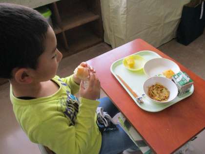 しょうがっこうのきゅうしょくは、とってもおいしいよ。