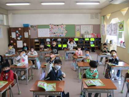 国語科の時間、全員発表することができました!自分たちに大きな拍手をしています!