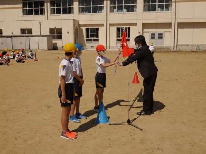 初めに、校長先生から各団長へ団旗を手渡し、激励の言葉をいただきました。