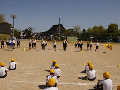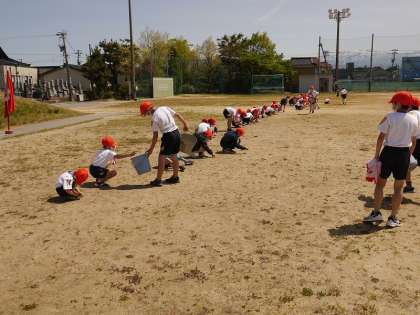 各団の応援練習の後、全校でグラウンドの石拾いや除草作業を行いました。青空の下、さっそく全校皆の心が一つにまとまった活動になりました。